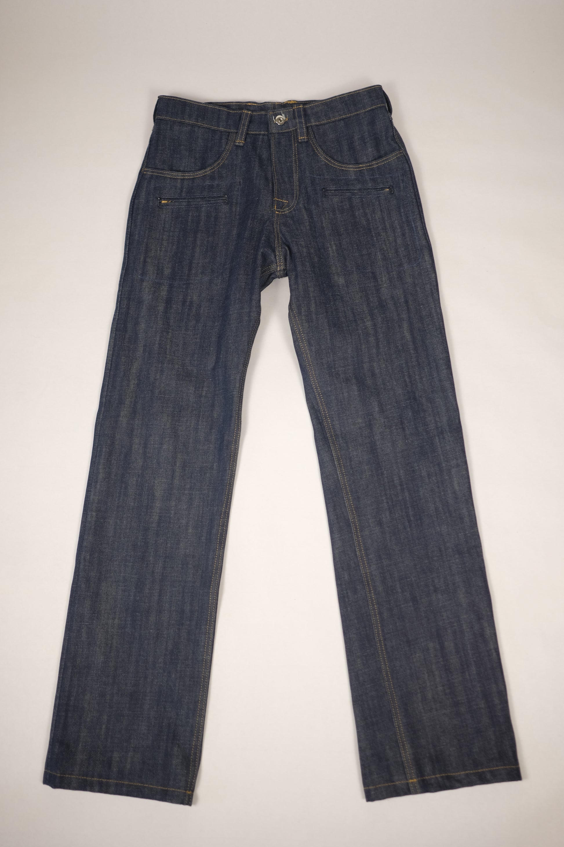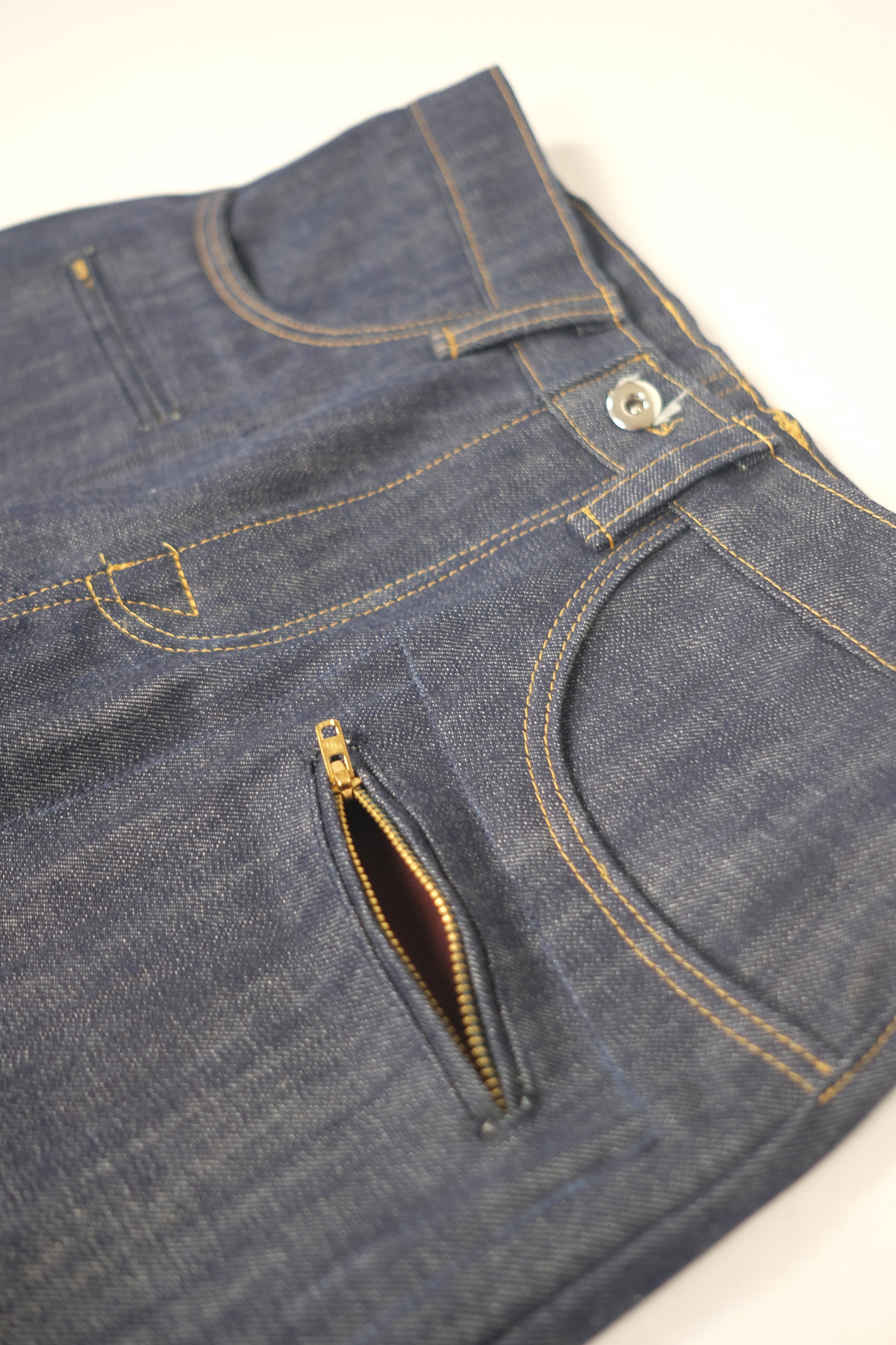Cut and sewn selvedge denim by trace on 13oz denim. Trace's signature cut and feaures two hidden zippers on the front.